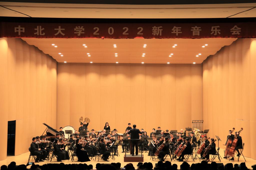 承办的“2022新年音乐会”分两场在科艺苑音乐厅举办。我校新组建的交响乐团首次亮相,为师生奉献了一场主题鲜明、格调高雅,集艺术性与思想性于一体的视听盛宴,展现了中北人奋发昂扬的精神风貌。校领导沈兴全、熊继军、雷锋斌、赵贵哲、苏铁熊、刘俊、蔡江辉等与1000余名师生一起聆听了音乐会。
