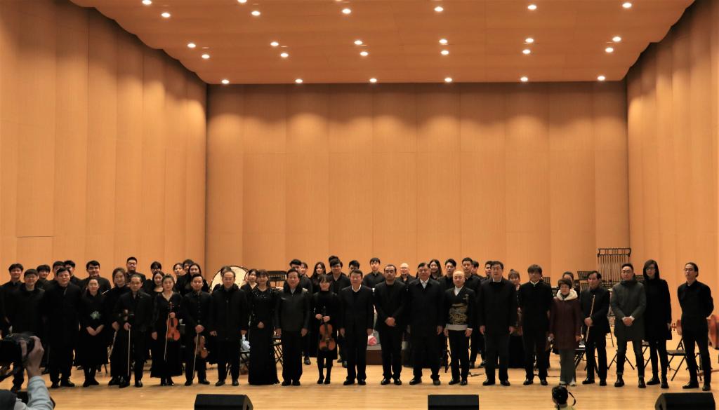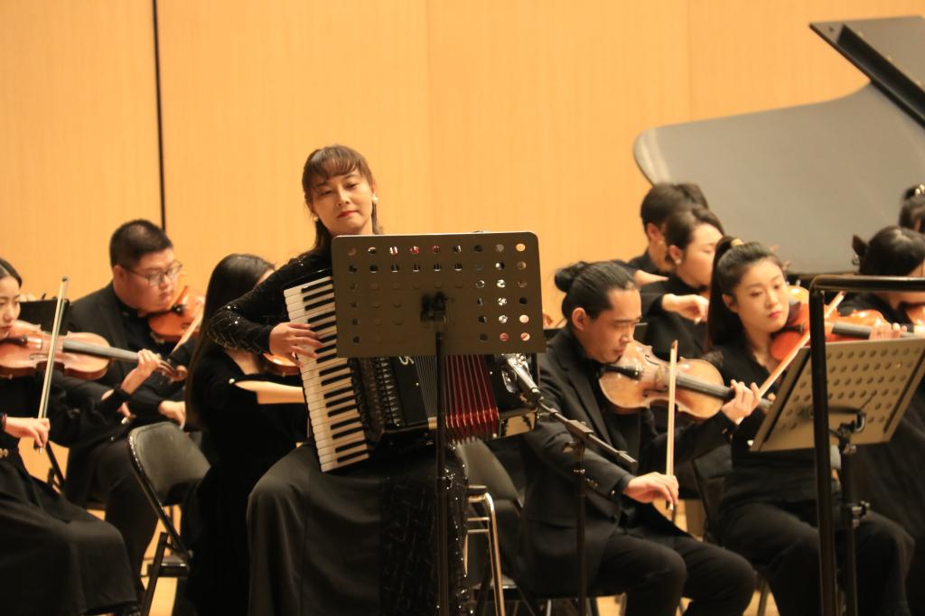 师生奉献了《红旗颂》《第二圆舞曲》《流浪之歌》《匈牙利舞曲第五号》《云想花想》《第一交响曲》《军营之歌》《燃情岁月》《雷电波尔卡》《钢铁洪流》等11首中外经典曲目。专业精准的演奏、震撼心灵的旋律将表演一次次推向高潮,赢得现场师生阵阵热烈的掌声。交响音乐会在激情澎湃的《保卫黄河》歌声中圆满落幕。
