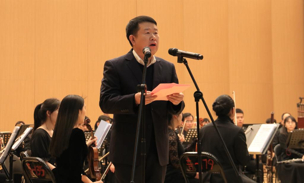 校党委书记沈兴全为音乐会致辞,他代表学校党政向全校师生员工、离退休老同志、海内外校友和长期关心支持学校事业发展的社会各界人士致以诚挚问候和美好祝福。他回顾了学校过去一年取得的成绩。2021年,我校坚持以习近平新时代中国特色社会主义思想为指导,深入贯彻落实党的十九届五中、六中全会精神,在党史学习教育、人才培养、学科建设、科学研究、师资强化、惠民工程等各方面取得显著进步,成绩令人振奋。展望2022年,他勉励全体师生不忘初心、牢记使命,以更加饱满的热情,以坚如磐石的信心、只争朝夕的劲头、坚韧不拔的毅力,紧抓国家“双一流”建设机遇,再接再厉,对标一流、追求卓越,加快推进学校高质量发展,携手书写新时代中北教育改革发展的奋进之笔,努力以优异成绩迎接党的二十大胜利召开。