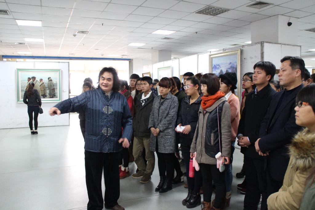 表示深深地感谢,并对他创作的油画向参观的师生做了详细生动的讲解,最后和大家一一合影留念。