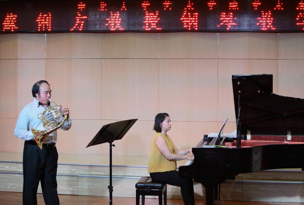 10日晚7:30,第1教学实践音乐厅蘇老师的“钢琴教学演讲音乐会”给恰逢教师节的现场教师献上了一台多彩的音乐盛宴。作品涉及到巴洛克,古典以及浪漫乐派时期的作品。娴熟的演奏技术,时而在键盘上跳跃、时而在飞舞。形象化的讲解和音乐表现,使所有在场师生宁静至极,美好的音乐把大家带进了梦幻般的诗画。最后一首作品,由蘇老师与我校圆号演奏家李斌老师合作演出舒曼的钢琴与圆号作品“柔版与快板”中结束。