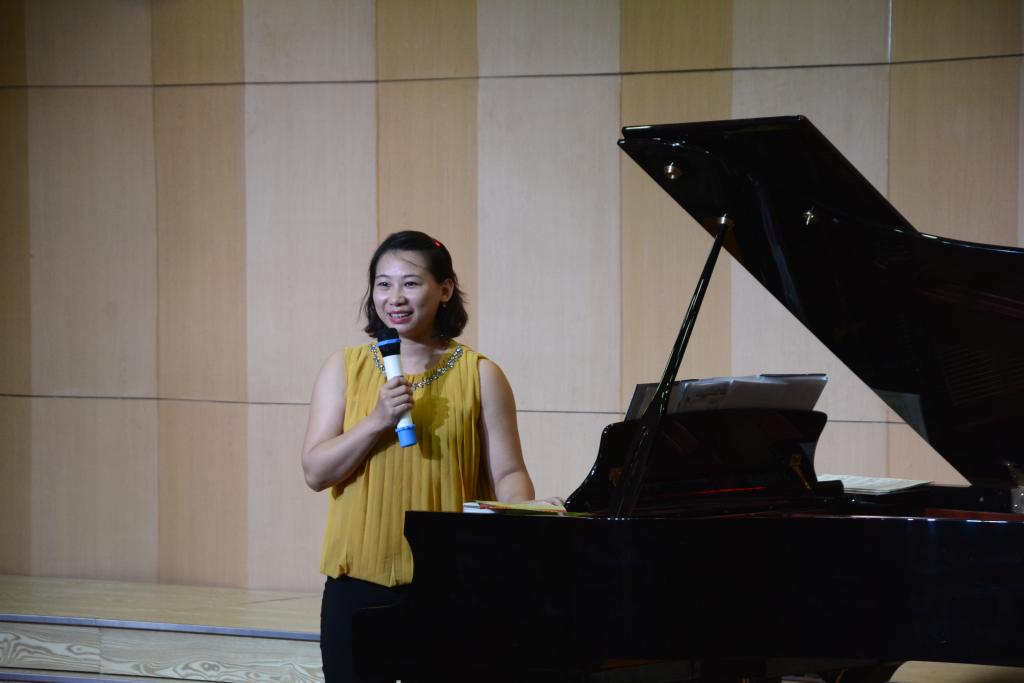 。蘇老师从钢琴的起源与不同时代的大众化钢琴音乐表现特点作为开场,随之用她那通俗化的语气和理解方式逐渐深入讲起,并运用多媒体和现场弹奏的形式进行形象化比喻和分析,把同学们带进了出神入化的音乐境界。不但使同学们欣赏到了钢琴音乐之美,更是在轻松愉快的互动氛围中学到了一些有关音乐欣赏的知识,赢得了同学们的阵阵掌声。