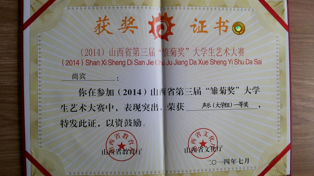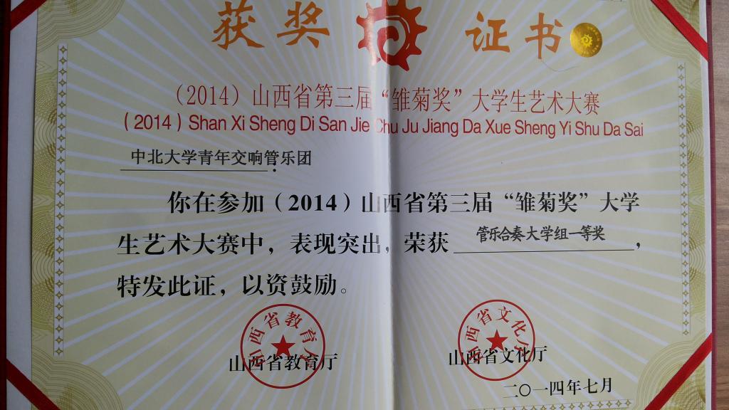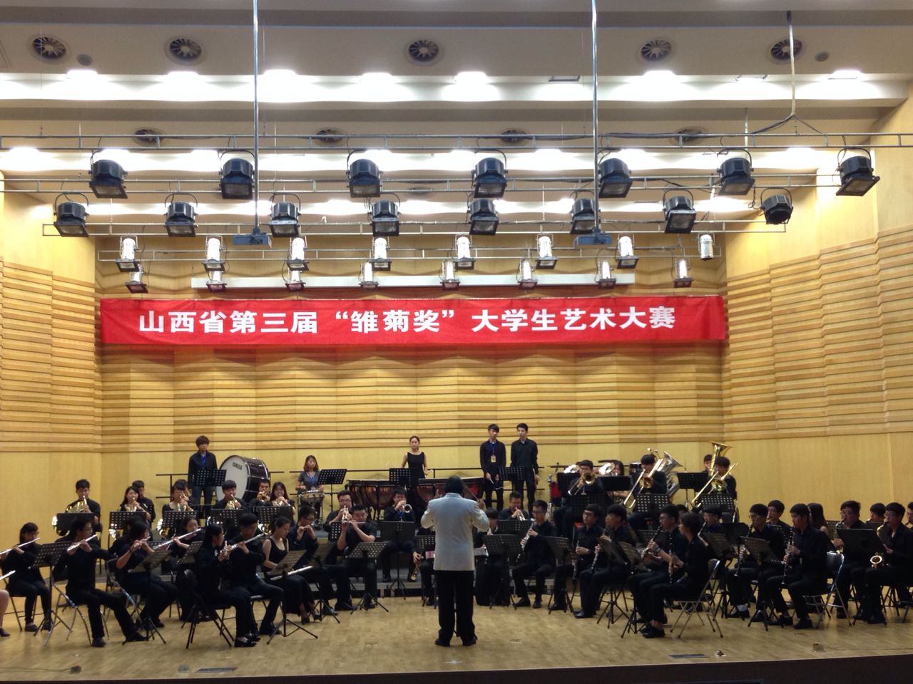 学科管理部主任李斌教授冒着炎热酷暑带领60余名师生,经过精心排练,参加了由山西省教育厅、山西省文化厅举办的《山西省第三届“雏菊奖”大学生艺术大赛》。我校参赛师生在比赛中精神饱满、信心百倍,经过多轮的评比最终中北青年交响管乐团《管乐合奏》荣获“一等奖”;尚宾同学获声乐组美声“一等奖”,其他学生还分别获管弦“三等奖”6名、“最佳表演奖”7名。同时获“优秀指导教师奖”的教师有:李斌、周照民、刘俊斌、温洁、李楠、马新媛。