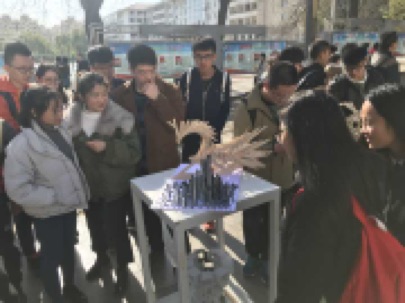 16120541班、16120542班学生的《立体构成》结课作品在中央大道展出。专业代课教师温非老师以及541、542班全体师生参加了此次展览。
