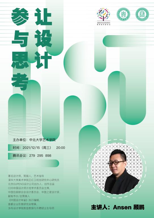 举办了线上主题讲座《让设计参与思考》。本次讲座由著名设计师顾鹏主讲。在讲座中,顾鹏老师从“设计师的定义”“专业”“悟道的道路”“动词设计”“以设计向社会发言”“交流也是一种设计”等六个角度,进行全方位的讲解,并通过大量实际案例的分享,让同学们从多维度了解设计的过程、设计的意义,以及市场向设计师提出的新要求。讲座尾声,顾鹏老师就设计师的天职以及如何塑造设计师的技能等问题进行了互动答疑,同学们受益良多、收获颇深。