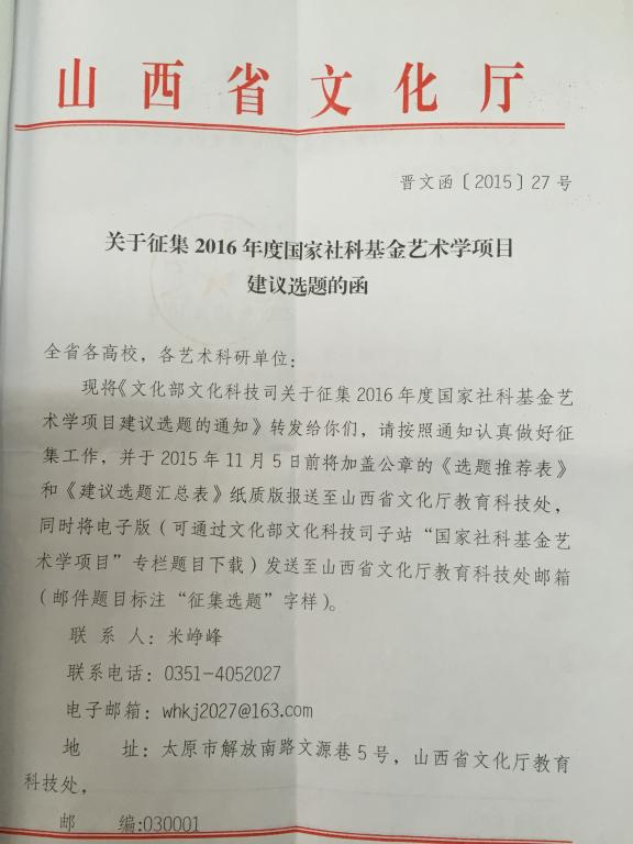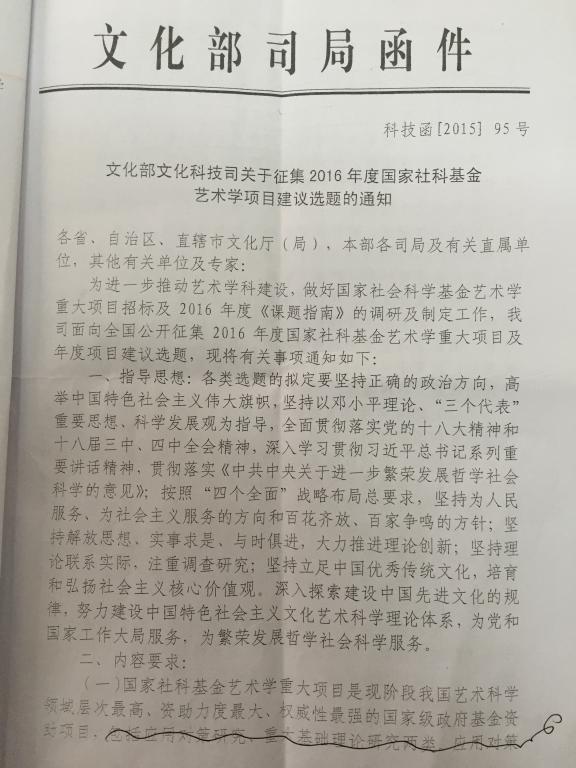 关于征集2016年度国家社科基金艺术学项目建议选题的通知