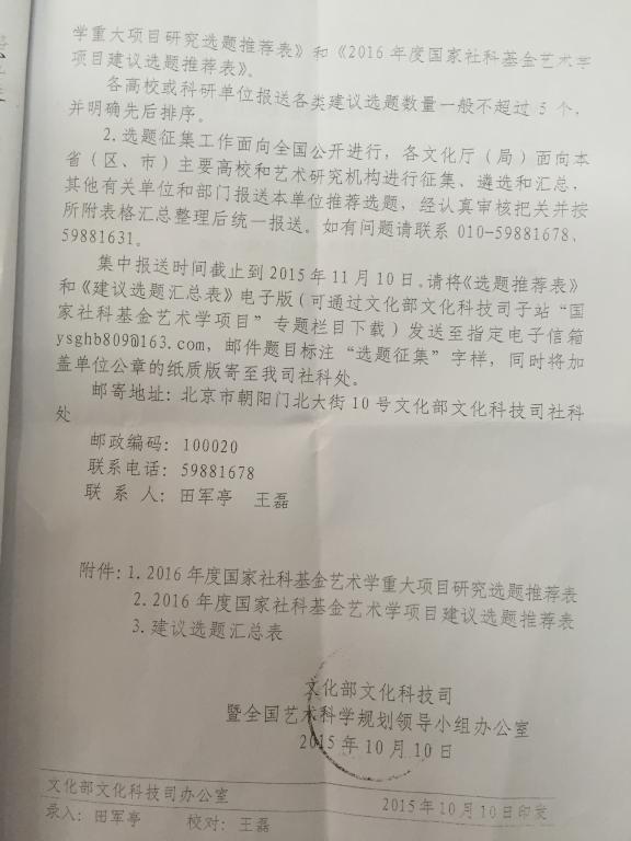 转发《关于征集2016年度国家社科基金艺术学项目建议选题的通知》(详情见附件),请A片无码 相关教师关注。