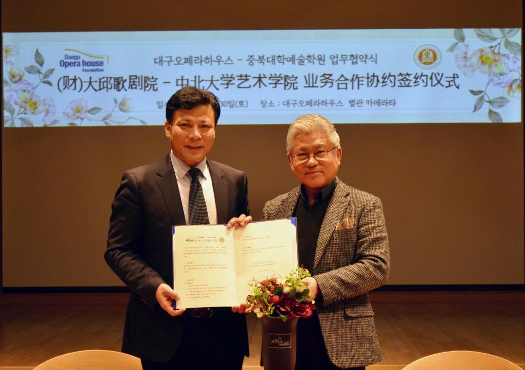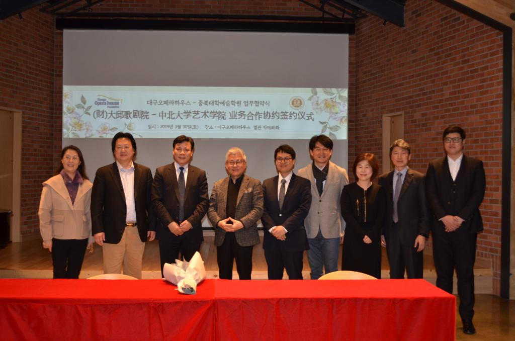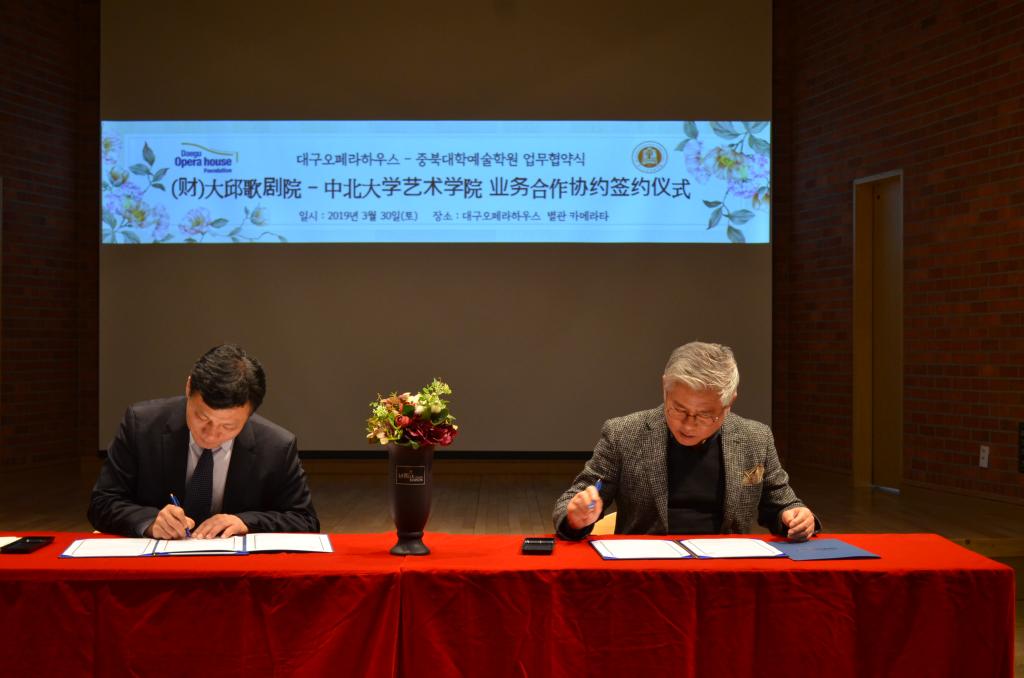 为进一步加强国际交流合作,本着“增进友谊、促进合作、互惠互利、共同发展” 的原则,经友好协商,A片无码 与(财)大邱歌剧院于3月30日在韩国大邱签订“建立中韩音乐表演人才培养合作基地”仪式。