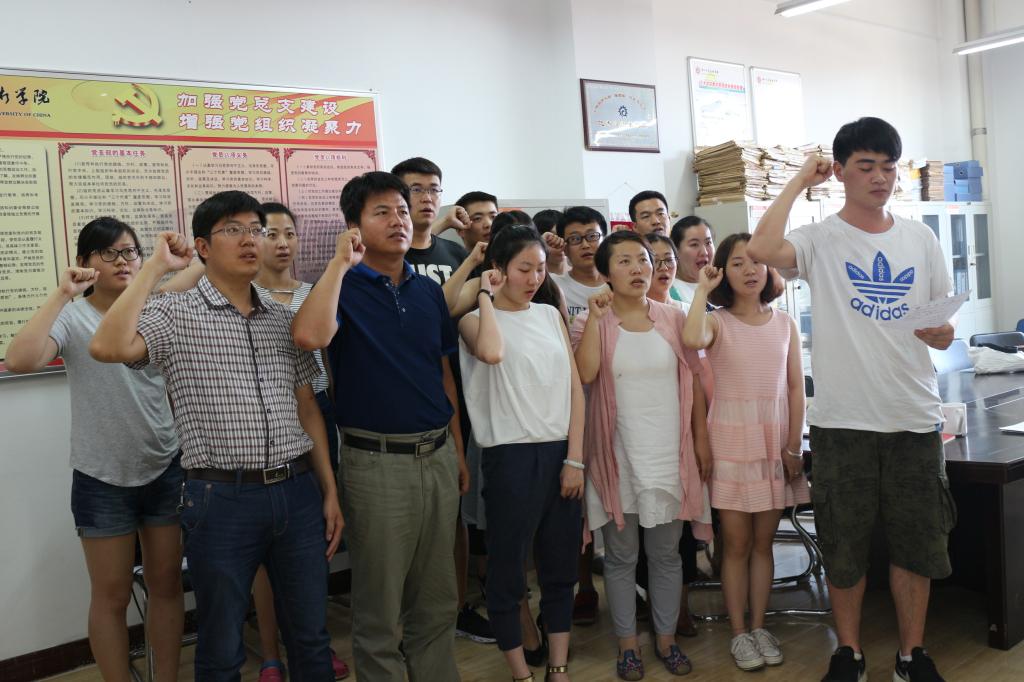 最后全体党员宣誓,一起重温了入党誓词。本次毕业生党员“两学一做,筑梦起航”学习活动取得了良好的效果。