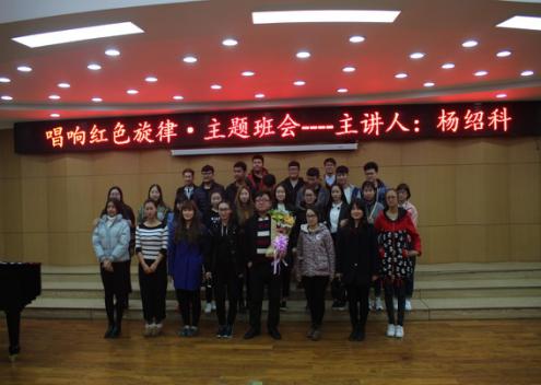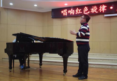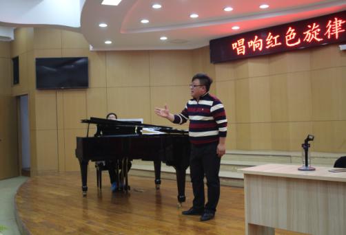 杨绍科老师为大家高唱红色旋律:《再见了,大别山》。同学们融入其中。