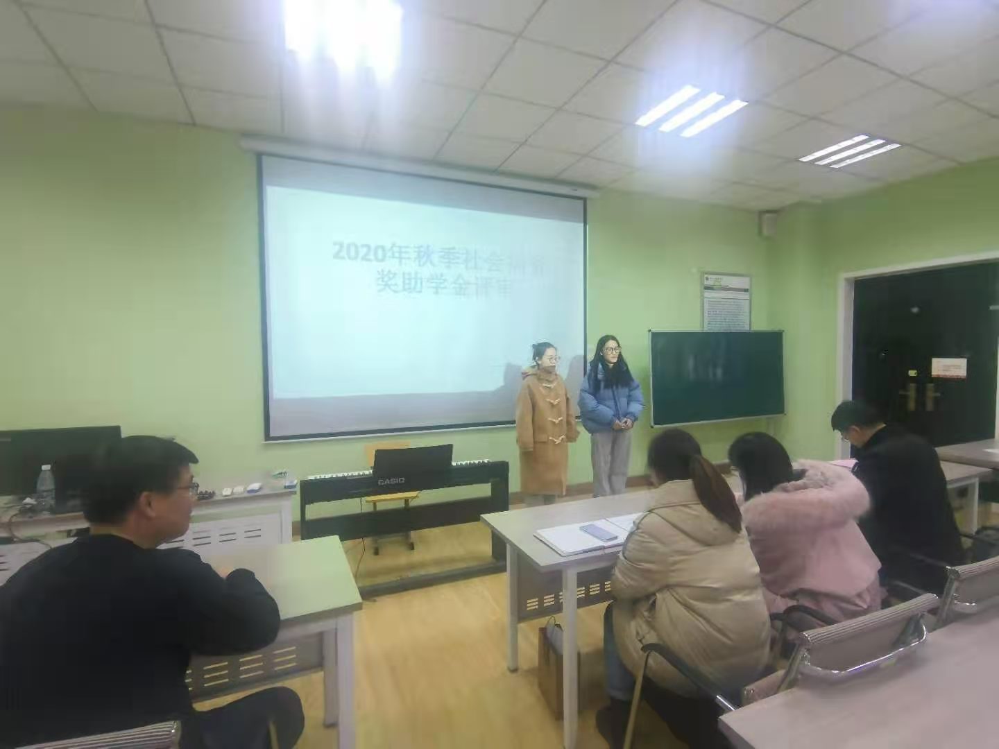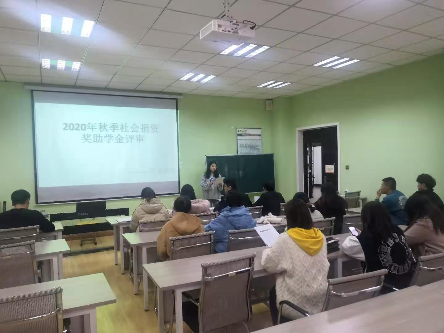 2020年秋季社会捐资奖助学金答辩评审会在9号楼526研究生教室召开,参加会议的是学生工作组党委副书记田维飞,学生科科长夏志丽、学生科副科长吕超,A片无码