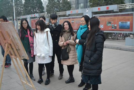 团委主办的“12.9艺彩杯书画摄影展”于中央大道圆满落下帷幕。本次书画摄影展以爱国主义教育为内容,以活跃校园文化生活,促进精神文明建设为目的,充分展示了学生的书画艺术水平,体现了群众性和艺术性。 90幅书画作品展现了我校师生良好的艺术修养和爱国荣校、歌颂美好生活的情怀, 全校师生对中央大道上展出的作品进行参观欣赏。