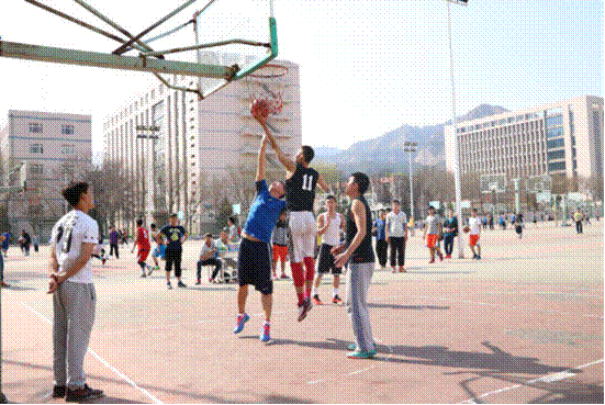 每一记妙传,都彰显了队员们的团队精神,展现出团队竞技独有的魅力。每一记精准的投篮, 每一次快速的上篮、每一个霸道的盖帽都使在场的观众和拉拉队欢声雷动。欢呼声、呐喊声此起彼伏,即使在篮球场外也能感受到同学们那一颗颗激动火热的心!经过一上午的激烈角逐,十四支队伍脱颖而出,进入了十四进七的淘汰赛。下午3时,决赛如期进行。同学们的热情不减,早早赶到了现场期待更精彩的比赛开始。经过一上午的筛选,下午参赛的球队更加优秀,竞争也更加激烈。